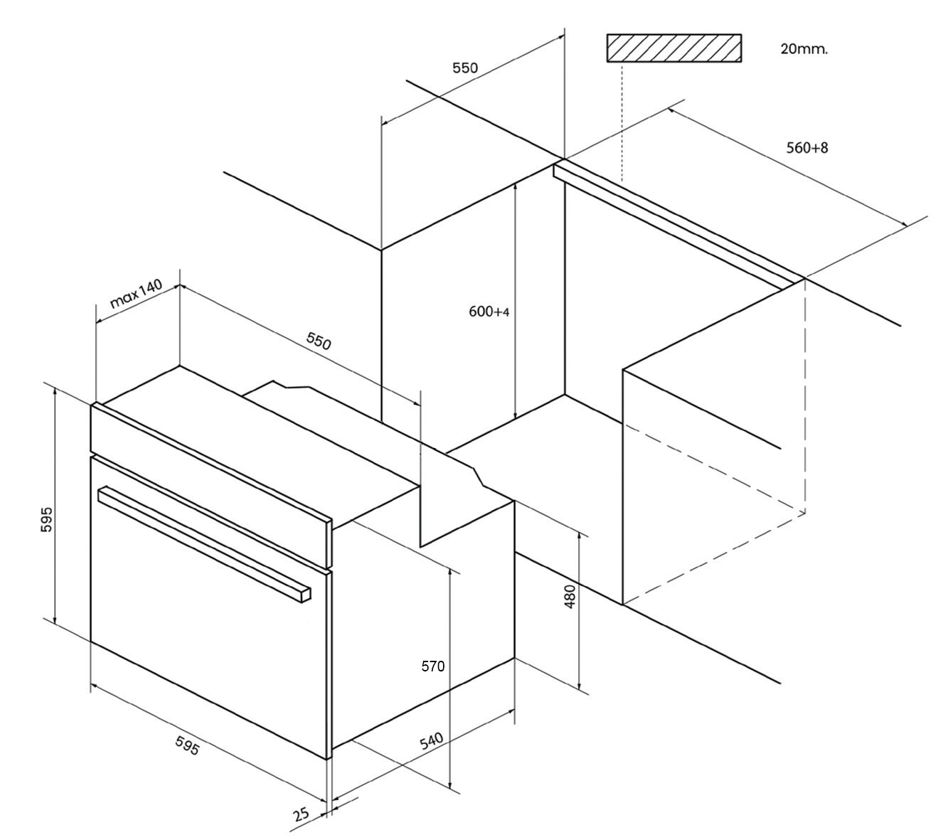 Размер ниши для встраивания под столешницу (ВхШхГ), мм