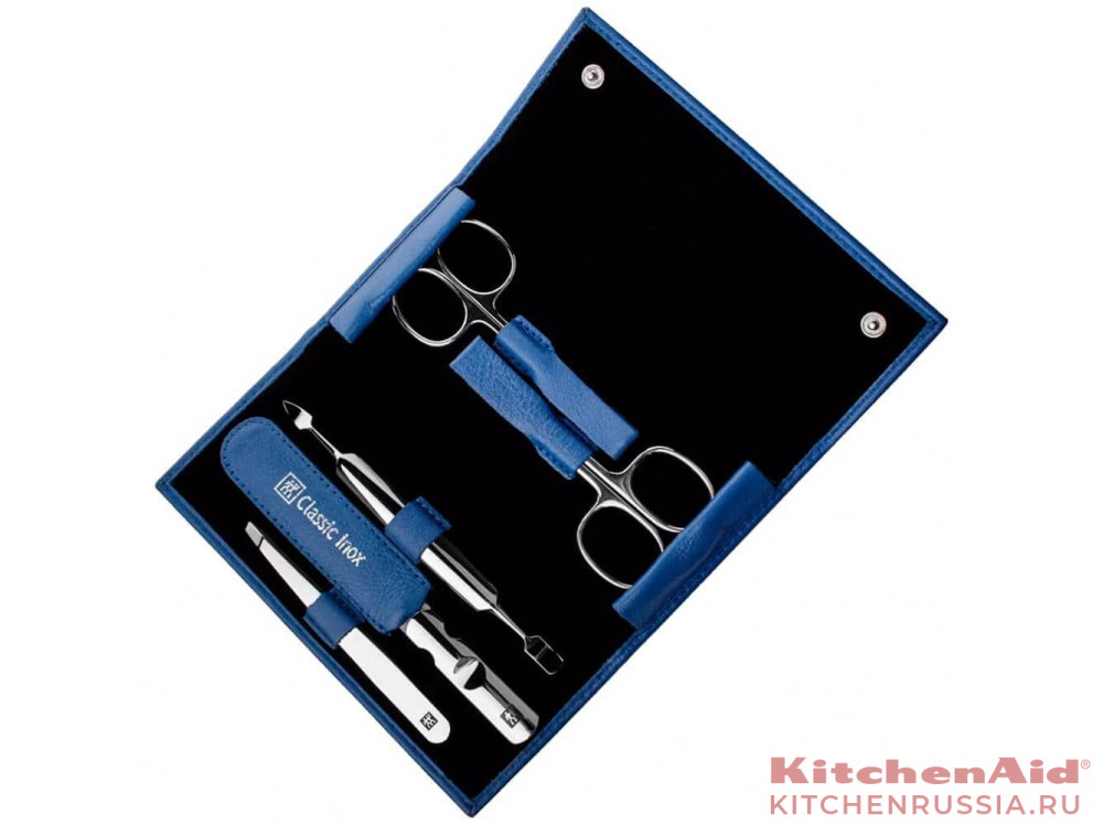 Набор маникюрный, 5 пр, Zwilling Beauty Classic голубой включает в себя все необходимое для красивых и ухоженных ногтей. Состав– ножницы для ногтей, ножницы для кутикулы, наклонный пинцет, инструмент для отодвигания кутикулы и чистки ногтей и сапфировую пилочку для ногтей. Маникюрные инструменты ZWILLING изготовлены из полированной нержавеющей стали, что обеспечивает их функциональность, долговечность и коррозионную устойчивость.