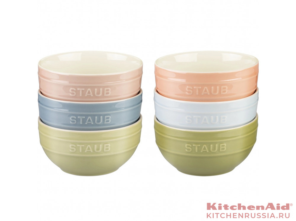 Этот набор керамических мисок в шести пастельных тонах, вы можете использовать в течение всего дня. Их можно использовать для хлопьев, салатов или обедов, а также для десертов и мороженого. Набор из 6 мисок, диаметром 14 см, светло-розового, розового, светло-голубого, синего, светло-зеленого и зеленого цвета глазури. Их можно мыть в посудомоечной машине, а также использовать в микроволновой печи и духовке.
